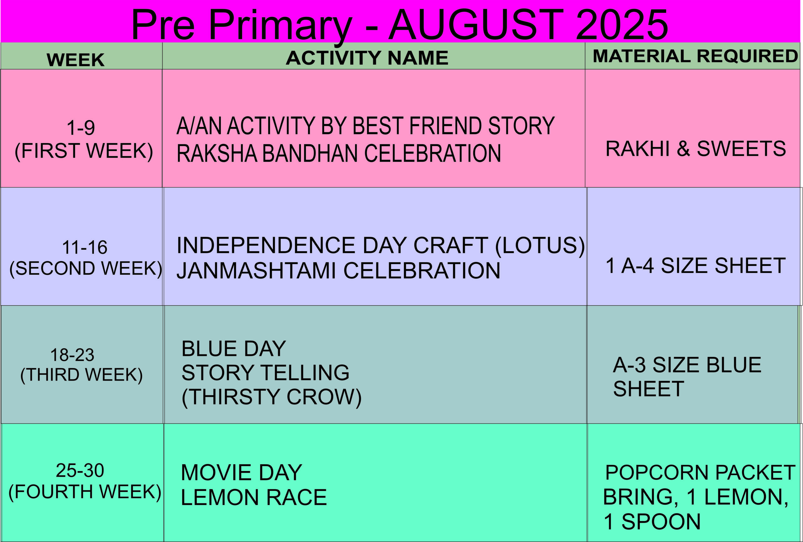 Junior & Senior May Events Calendar